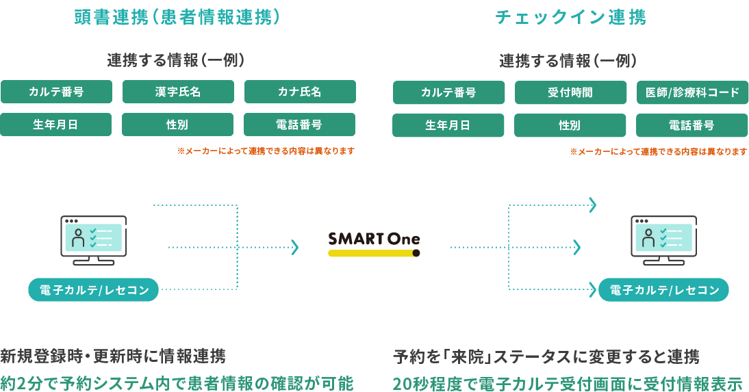 - 50社以上の電子カルテとの連携実績がございます。電子カルテメーカー様によって連携可否がございますので、弊社担当までお問い合わせください。